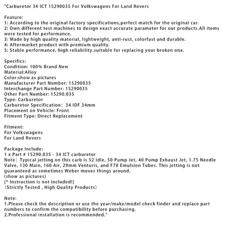 Vergaser 34 ICT 15290035 Für Volkswagen Für Land Rover