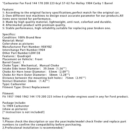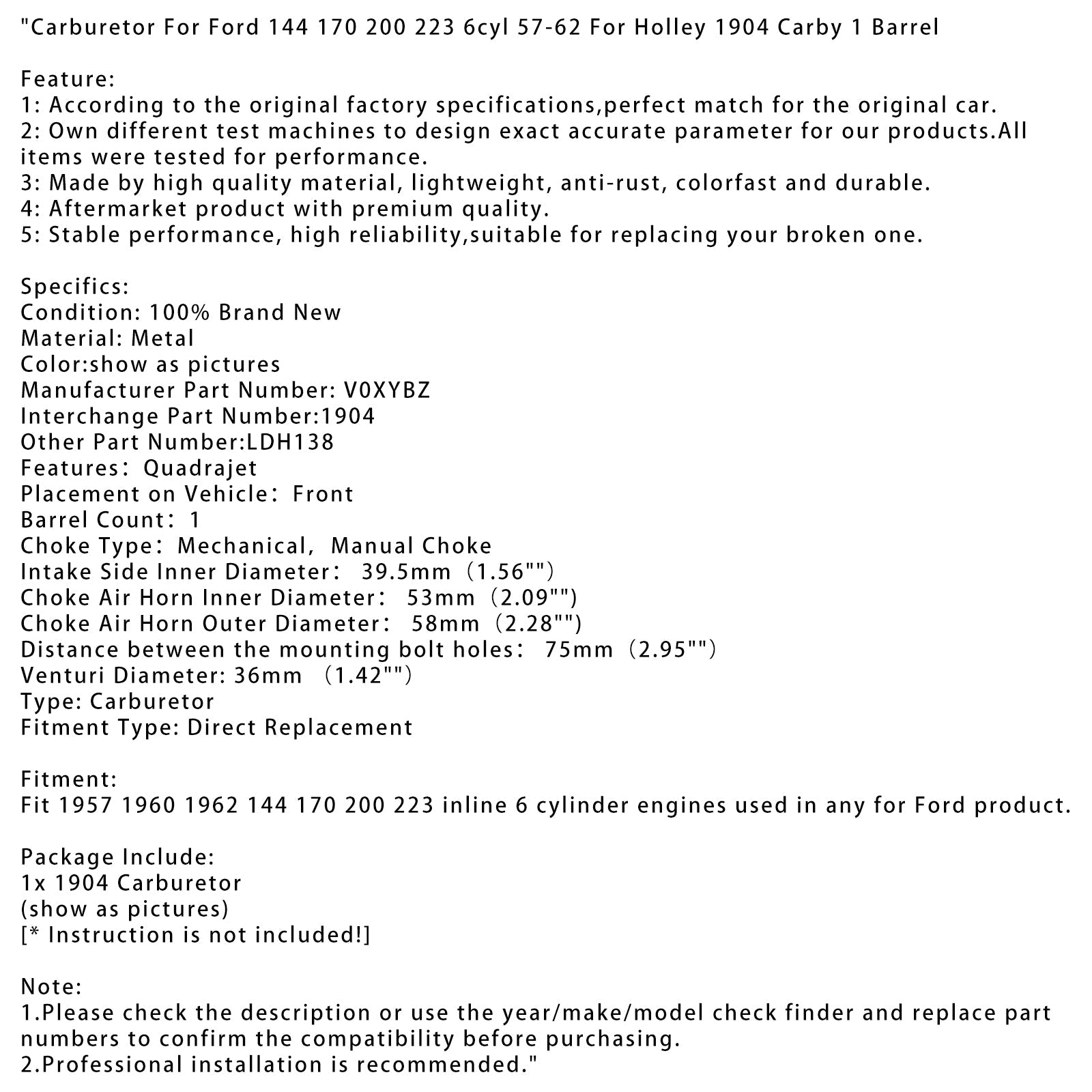Vergaser für Ford 144 170 200 223 6cyl 57-62 für Holley 1904 Carby 1 Barrel