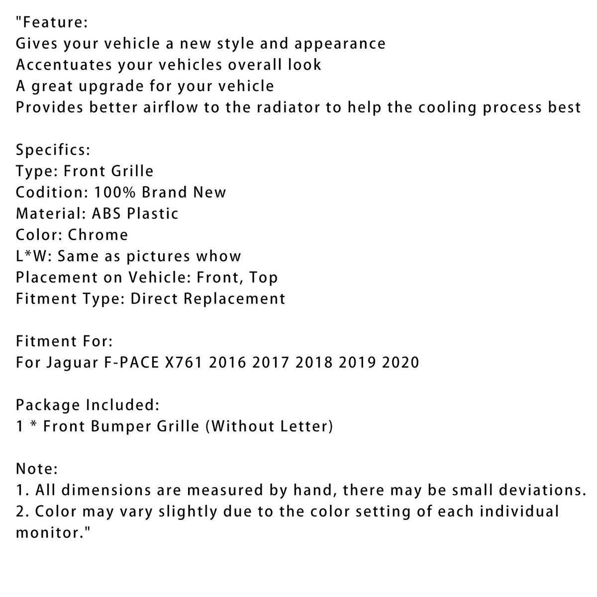 Chrom-Frontstoßstangengrill für JAGUAR F-PACE X761 2016–2020