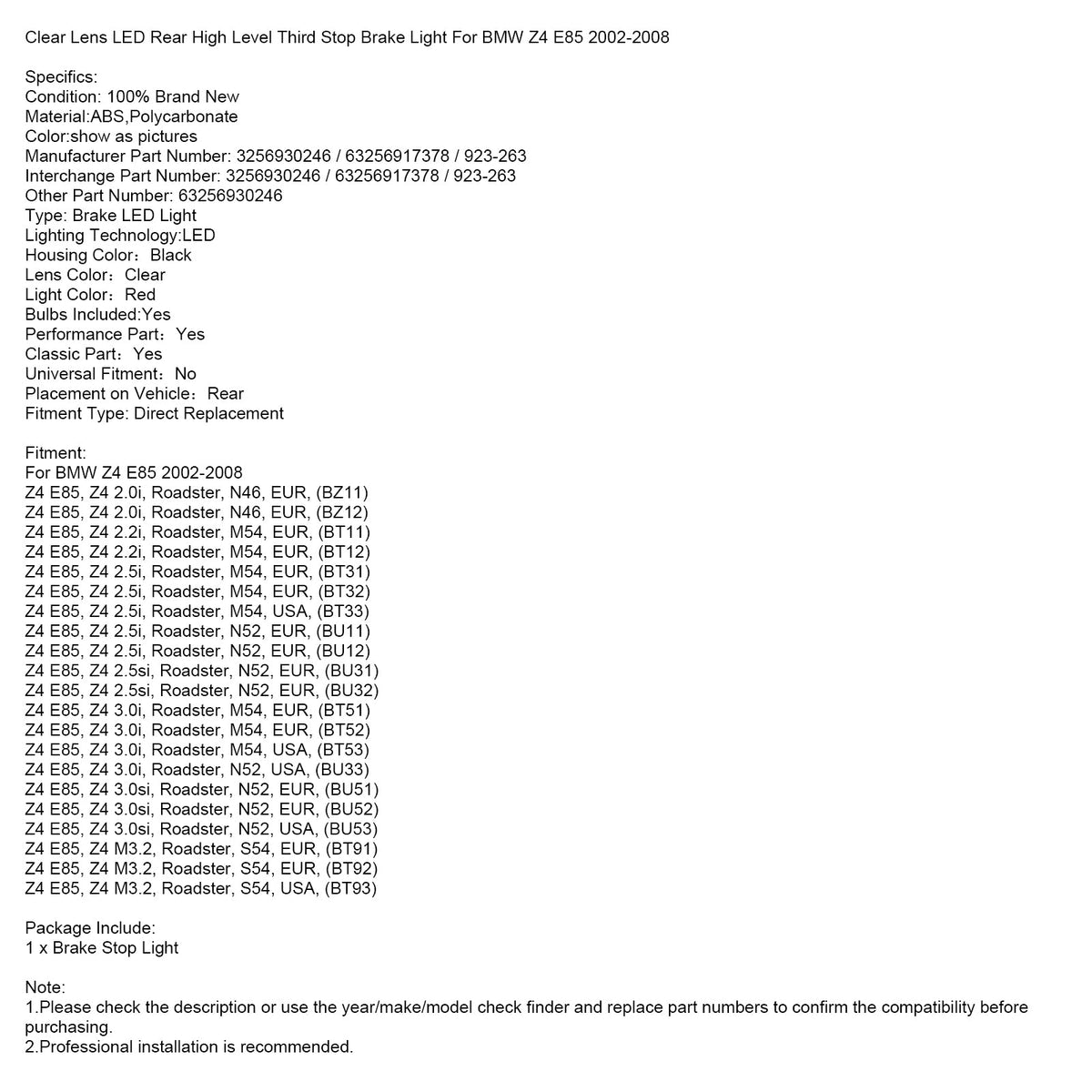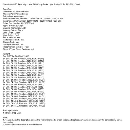 Klare Linse LED hinten hochrangige dritte Bremsleuchte für BMW Z4 E85 2002-2008