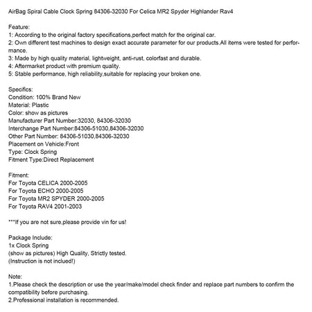 AirBag Spiralkabel Wickelfeder 84306-32030 Für Celica MR2 Spyder Highlander Rav4