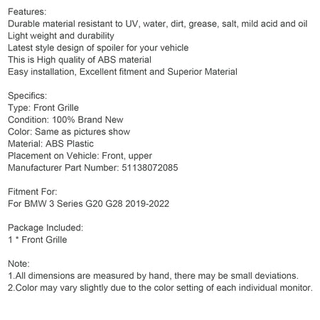 Diamond Kidney Grille Grill 51138072085 Für BMW 3 Series G20 2019-2022