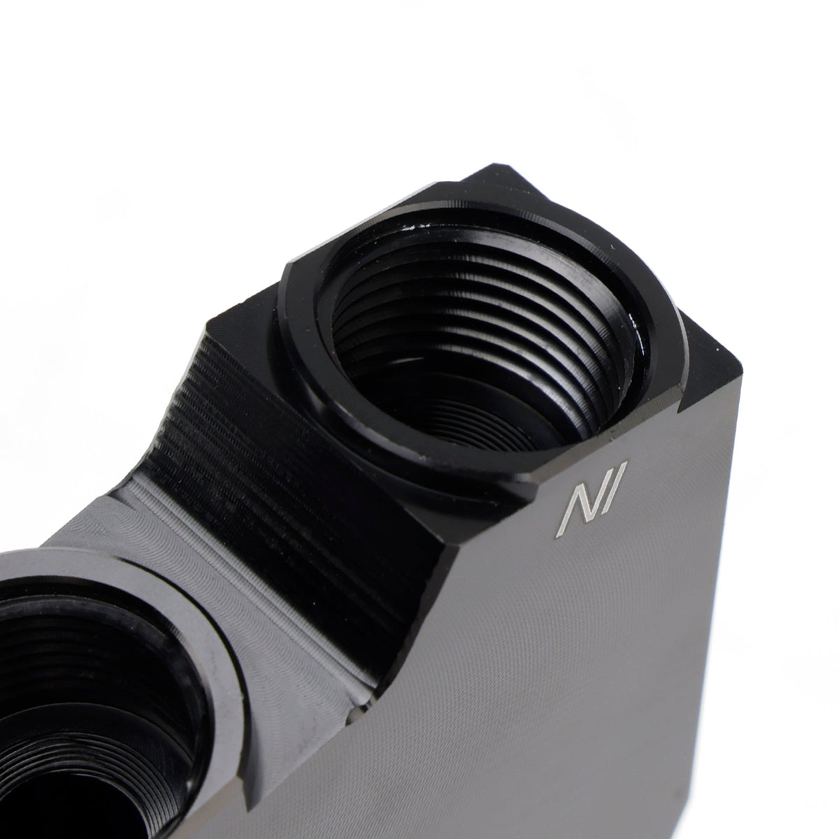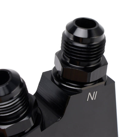 7: Das schlanke Design des Adapters bietet mehr Freiraum für die Header. Darüber hinaus gibt es 10 AN-Steckeranschlüsse für die Öleinlässe oder -auslässe sowie einen Anschluss für den Öltemperatursensor und die Ölzuleitung.
