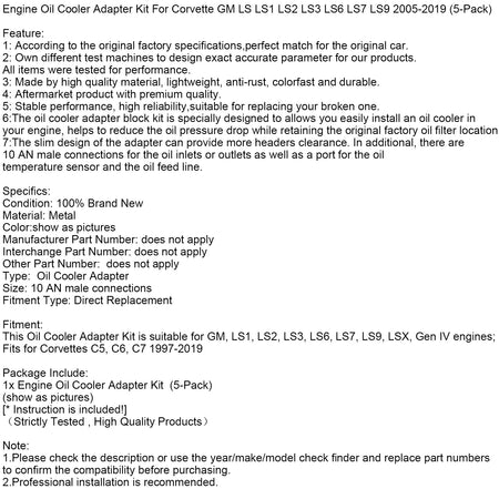 Motorölkühler-Adapter-Kit für Corvette GM LS LS1 LS2 LS3 LS6 LS7 LS9 2005–2019 (5er-Pack)