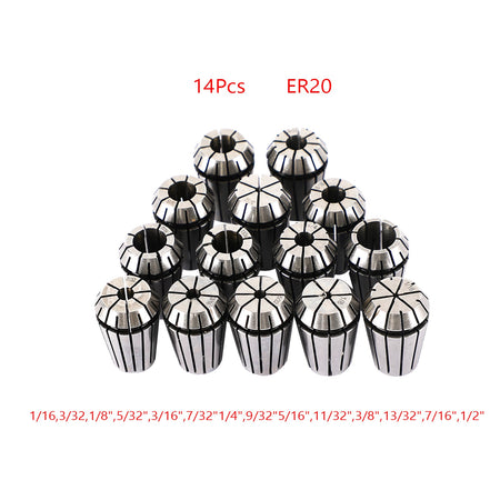 14pcs ER20 Spannzangen (1/16,3/32,1/8", 5/32 ", 3/16", 7/32 " 1/4 ", 9/32" 5/16 ", 11/32", 3/8 ", 13/32", 7/16 ", 1/2")