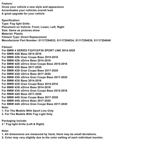 Nebelscheinwerfer Lichtabdeckung Einsatz Grill Grille 51117294831 Fit BMW F32 F33 F36 418D