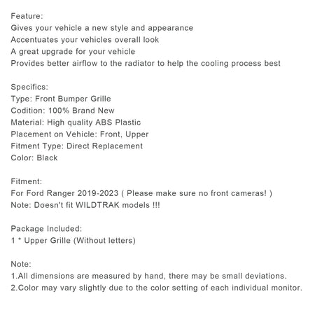 2019–2023 Ford Ranger T8 Frontsto?stangengrill, Schwarz