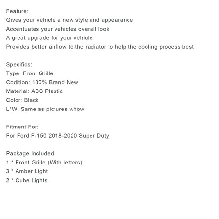 Front Bumper Grill Grille W/ LED Für Ford F150 2018-2020 Super Duty