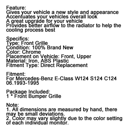 Kühlergrill für die vordere Sto?stange, passend für Mercedes-Benz E-Klasse W124 S124 C124 1993–1995