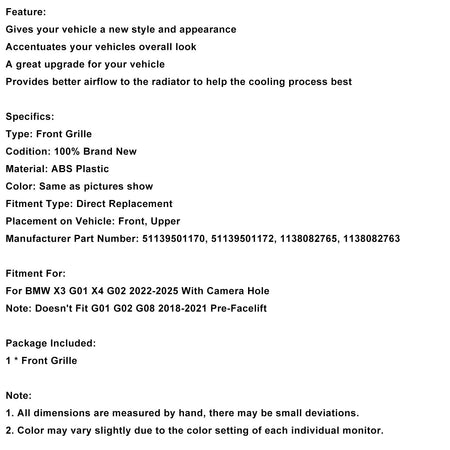 Hinweis: Passt nicht für G01 G02 G08 2018–2021 vor dem Facelift.