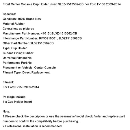 2009–2014 Ford F-150 Front Center Console Getränkehalter Einsatz 9L3Z-1513562-CB