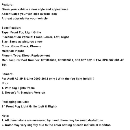 Front Lower Bumper Grille Nebelscheinwerfer Abdeckung Fit Audi A3 S-Linie S3 2009-2012