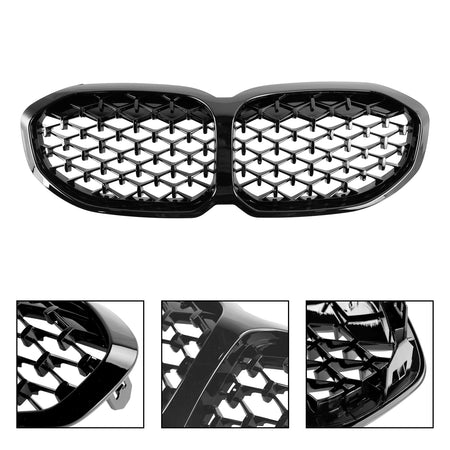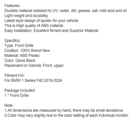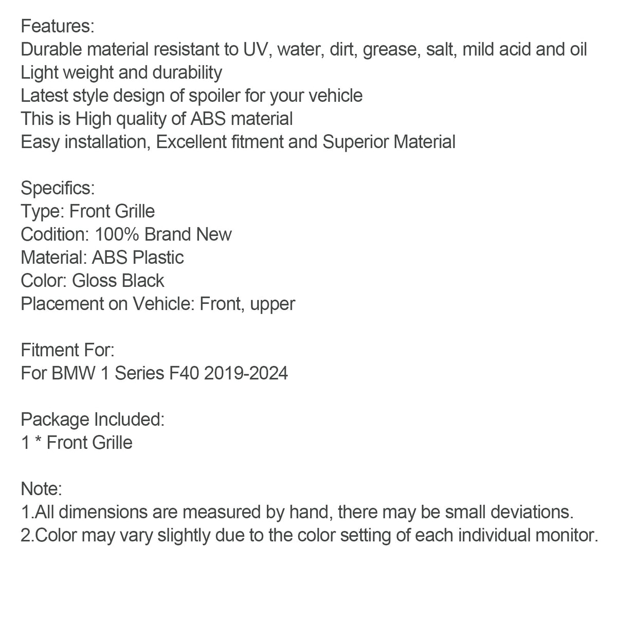 Gl?nzend Schwarz Diamant Vorne Nieren Grill Grille Fit Für BMW 1 Serie F40 2019-2024