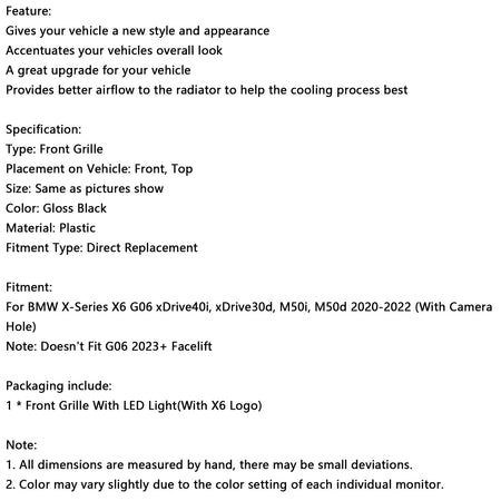 1 * Kühlergrill mit LED-Licht (mit X6-Logo)