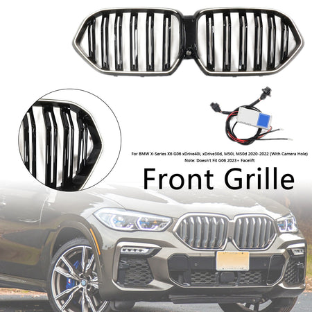 Schwarz glänzender Frontgrill für BMW X6 G06 M50i 2020-2022 mit Kameraloch
