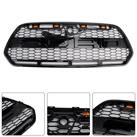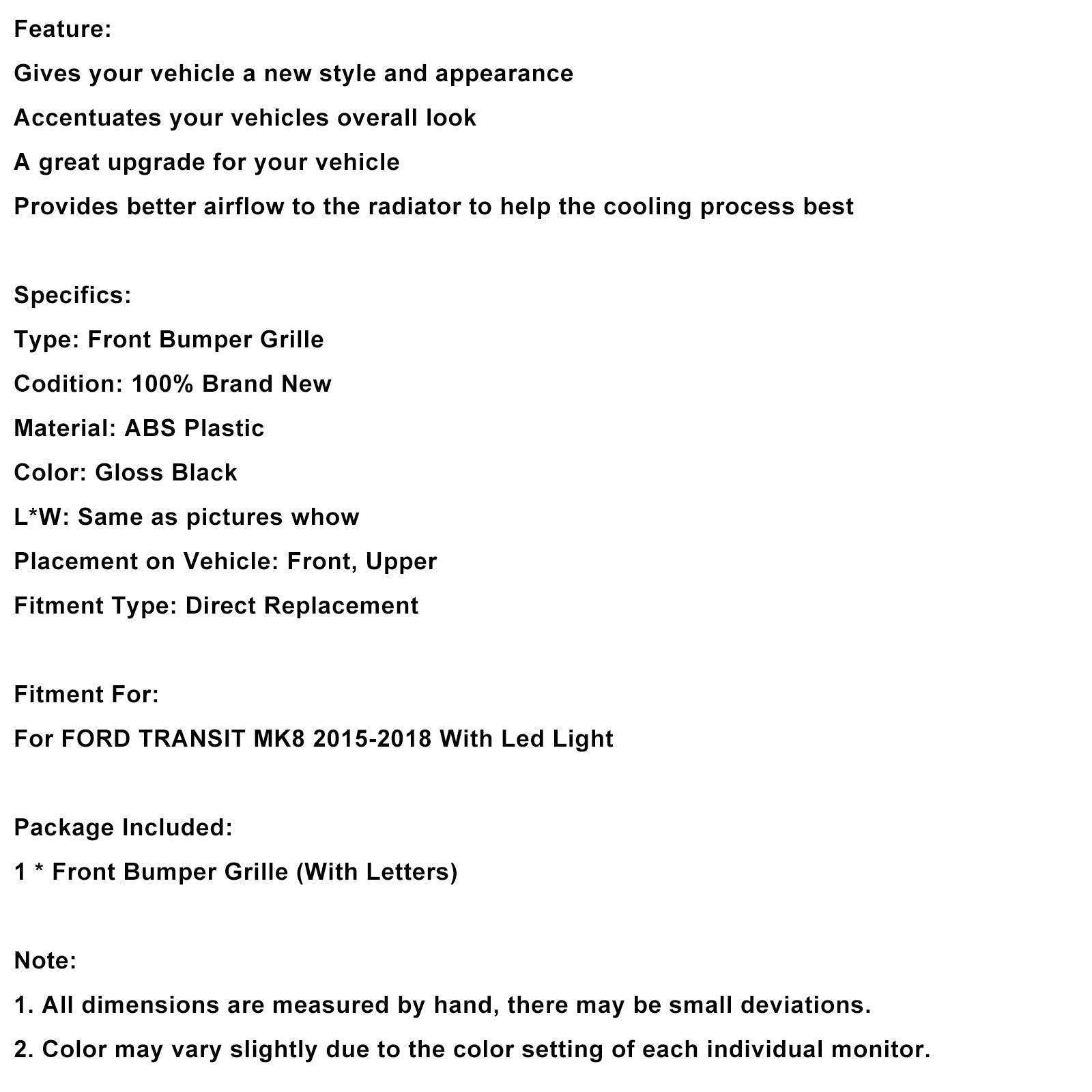 Glänzend Schwarz Front Stoßstange Grill Grill Fit für Ford Transit MK8 2015-2018 Raptor W/LED