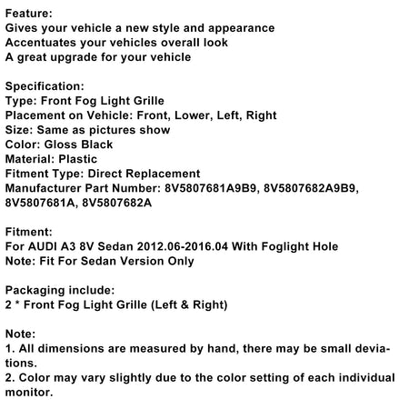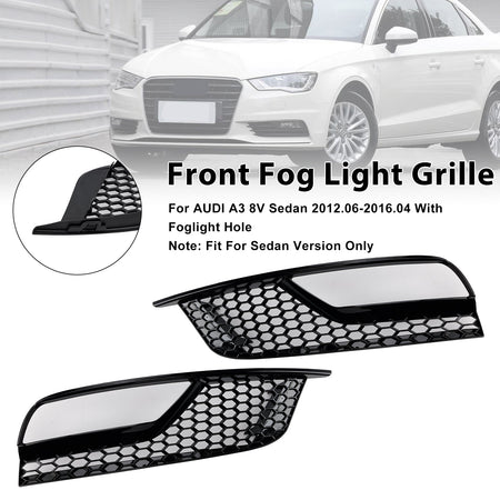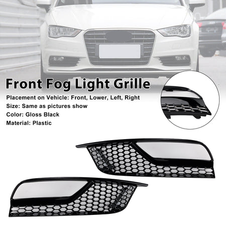 Glanz Schwarz Front Nebel Licht Grill Abdeckungen Fit Audi A3 8V Limousine 2013-2016