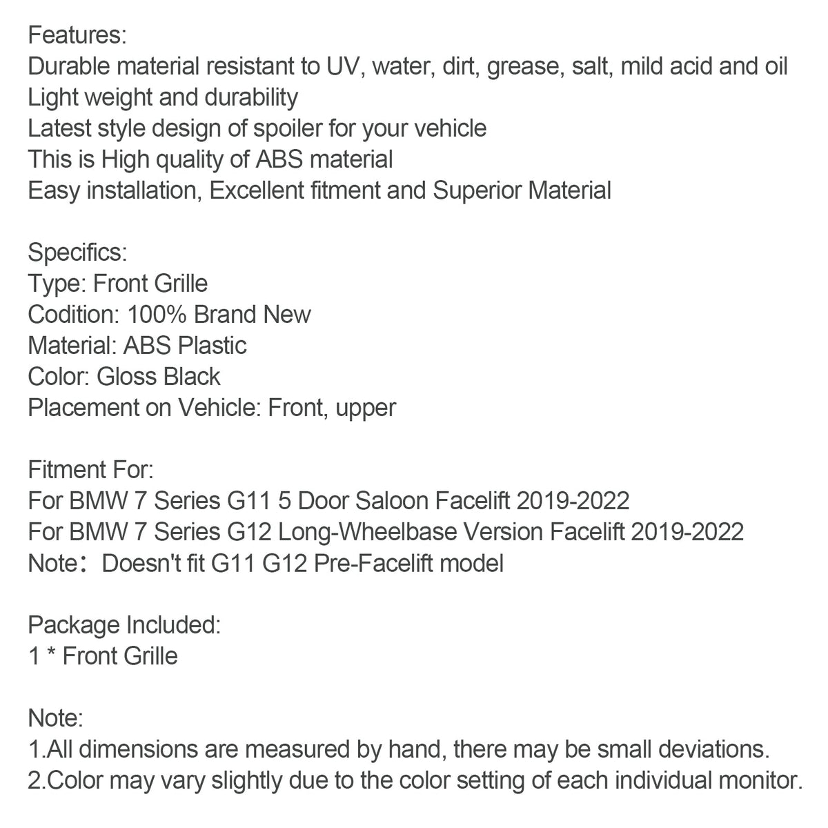 Hinweis: Passt nicht zum Modell G11 G12 vor dem Facelift.
