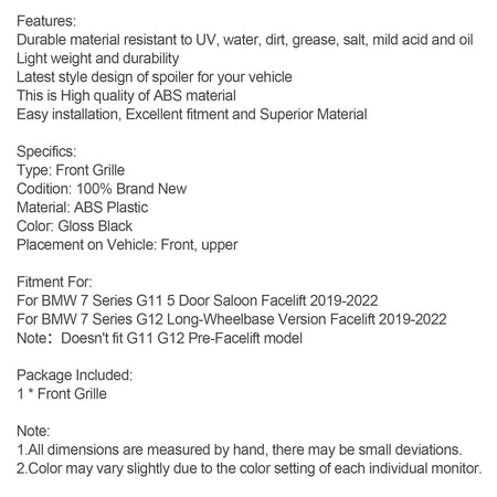 Glanz Schwarz Front Grill Grille Fit Für BMW 7 Serie G11 G12 2019-2022 Einzigen Lamelle