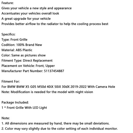 Für BMW BMW X5 G05 M50d 40iX 50iX 30dX 2019-2022 Mit Kamera Loch