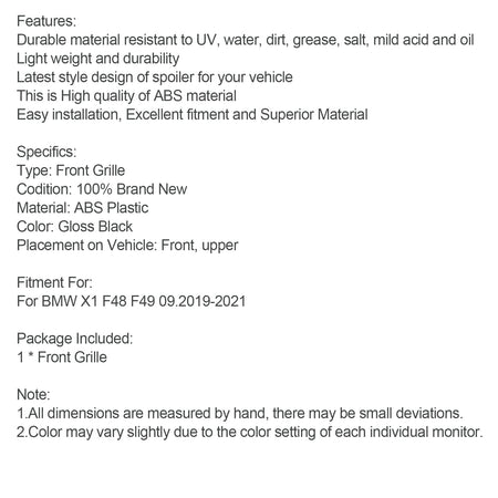 Glanz Schwarz Front Niere Grill Fit für BMW X1 F48 F49 2019-2021 Dual Lamellen