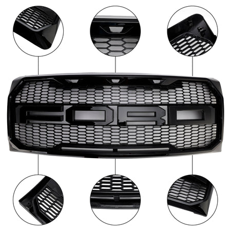 Frontstoßstangengrill im Raptor-Stil, glänzend schwarz, passend für Ford F150 2009-2014