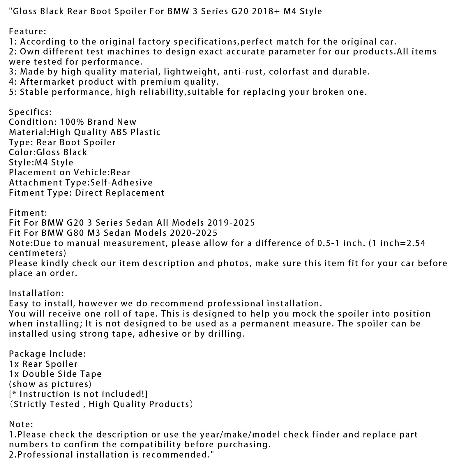 Schwarz glänzend Heckspoiler für BMW 3er G20 G80 2018+ M4 Style