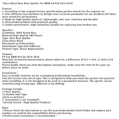 Heckspoiler in Hochglanzschwarz, passend für BMW X4 F26 2014-2018