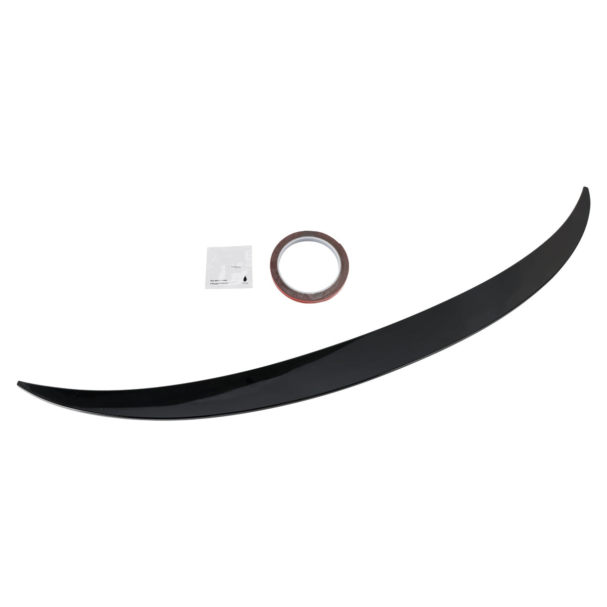 Sie erhalten eine Rolle Klebeband. Dieses dient dazu, den Spoiler bei der Montage probeweise in Position zu bringen; es ist nicht für die dauerhafte Befestigung gedacht. Der Spoiler kann mit starkem Klebeband, Klebstoff oder durch Bohren montiert werden.