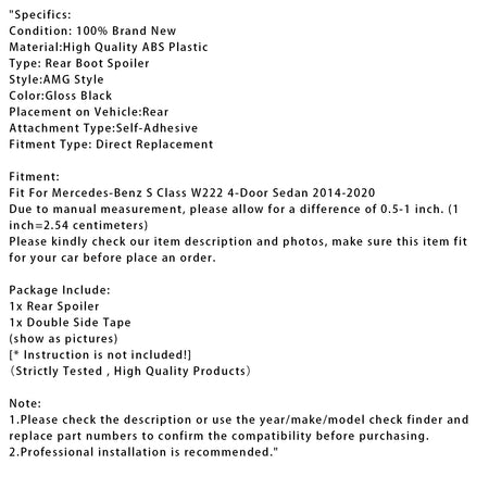 Schwarz glänzender Heckspoiler für Mercedes-Benz S-Klasse W222 2014–2020