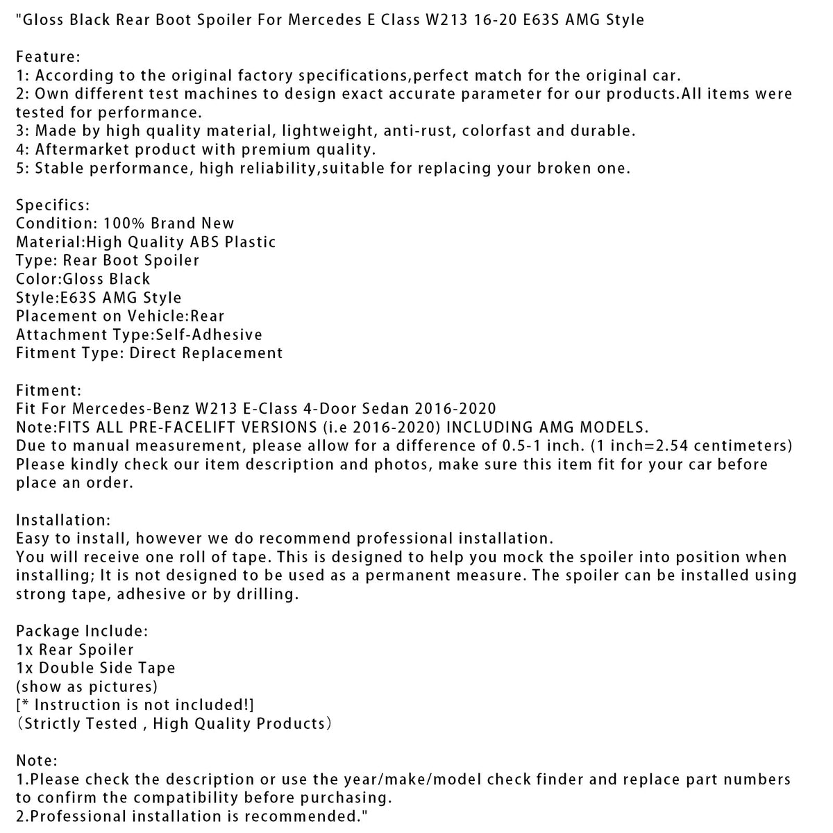 2016-2020 Mercedes E-Klasse W213 E63S AMG-Style Heckspoiler in glänzendem Schwarz