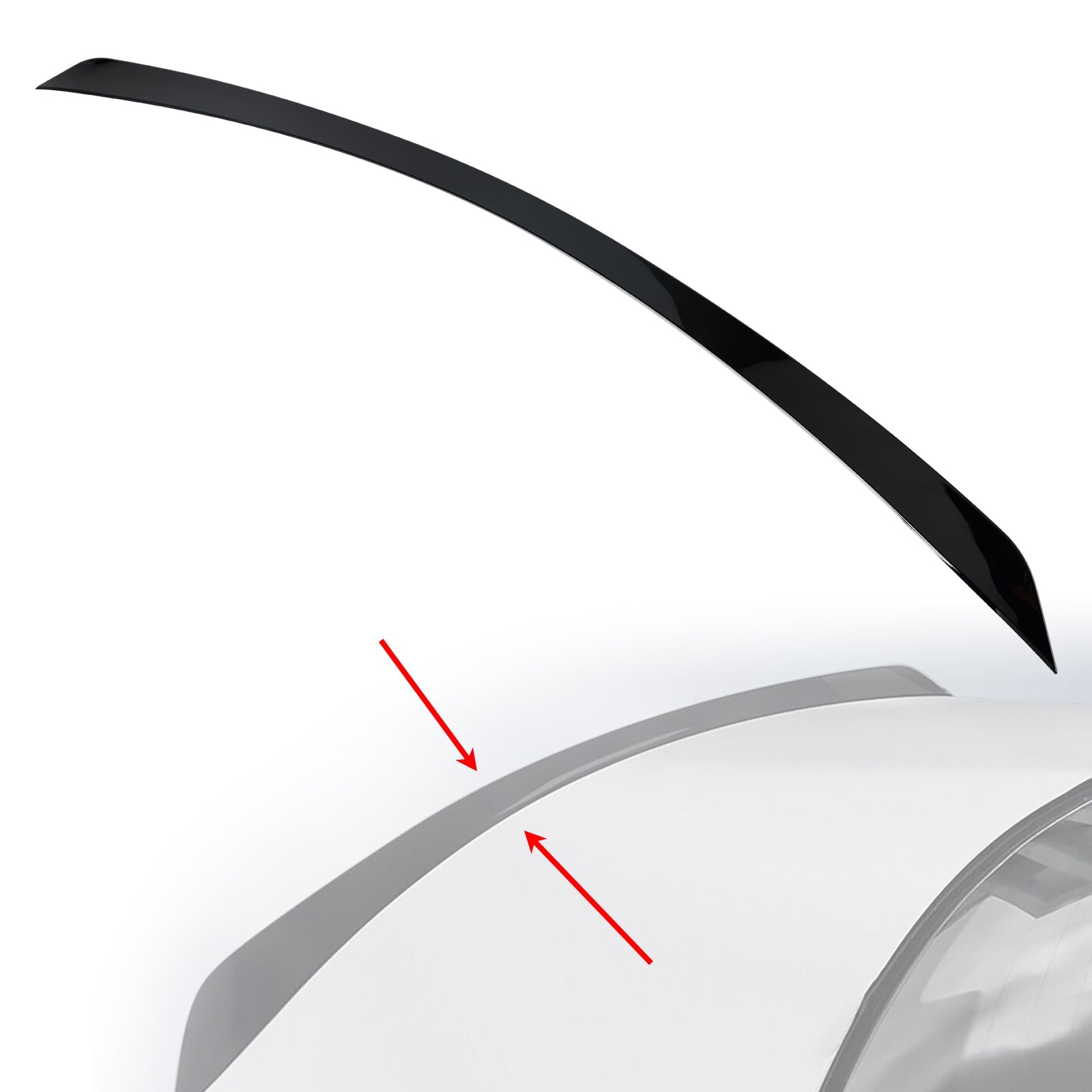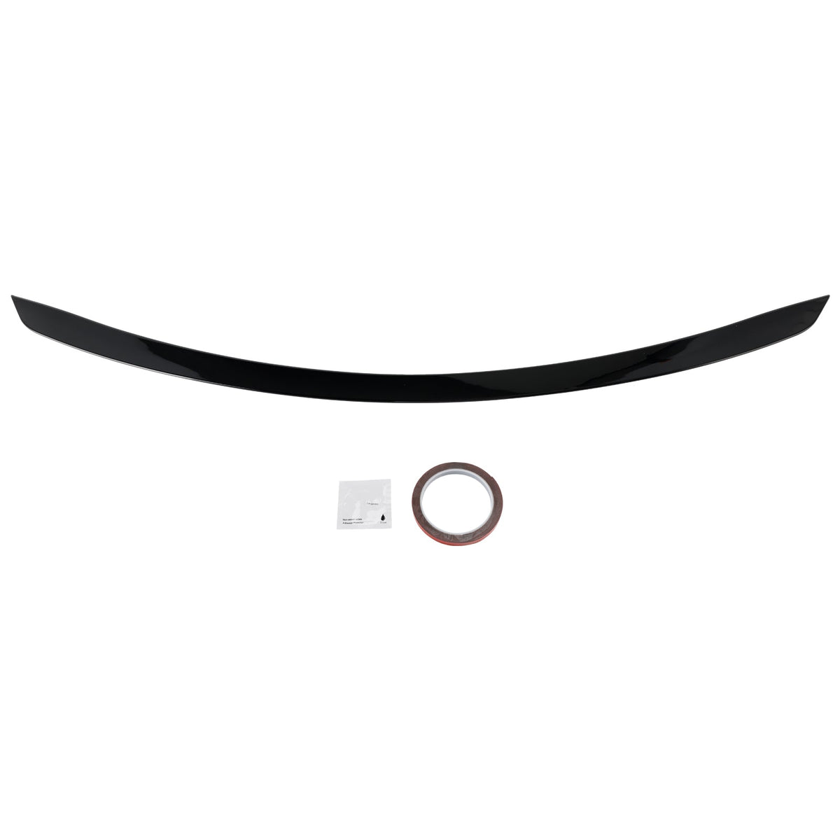 Sie erhalten eine Rolle Klebeband. Dieses dient dazu, den Spoiler bei der Montage probeweise in Position zu bringen; es ist nicht für die dauerhafte Befestigung gedacht. Der Spoiler kann mit starkem Klebeband, Klebstoff oder durch Bohren montiert werden.