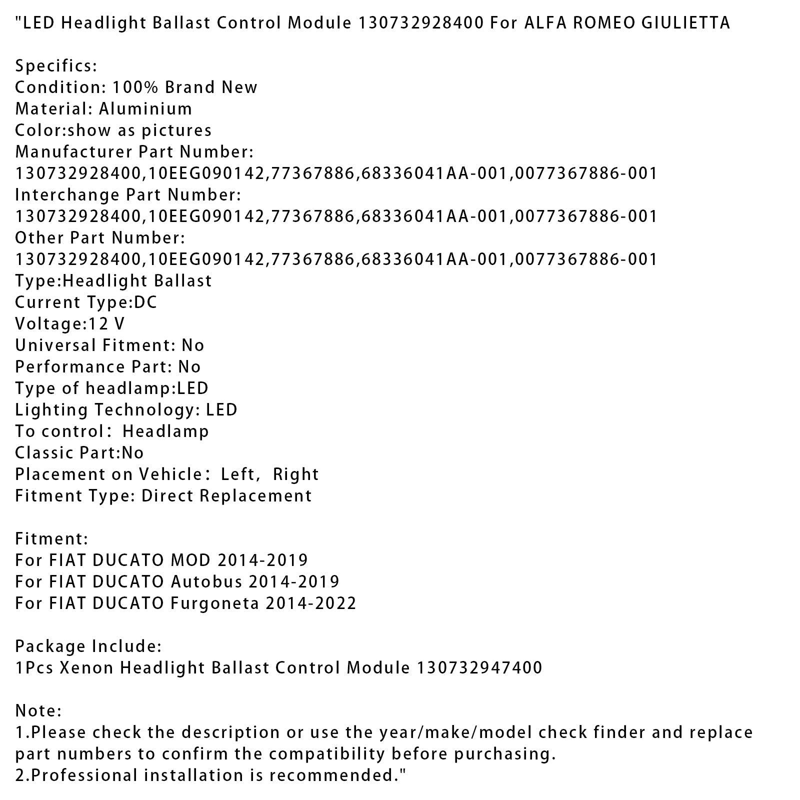 1. Bitte überprüfen Sie vor dem Kauf die Beschreibung oder verwenden Sie den Prüffinder für Jahr/Marke/Modell und ersetzen Sie die Teilenummern, um die Kompatibilität zu bestätigen.