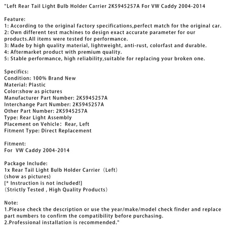 Links Hinten Schwanz Licht Birne Halter Träger 2K5945257A Für VW Caddy 2004-2014
