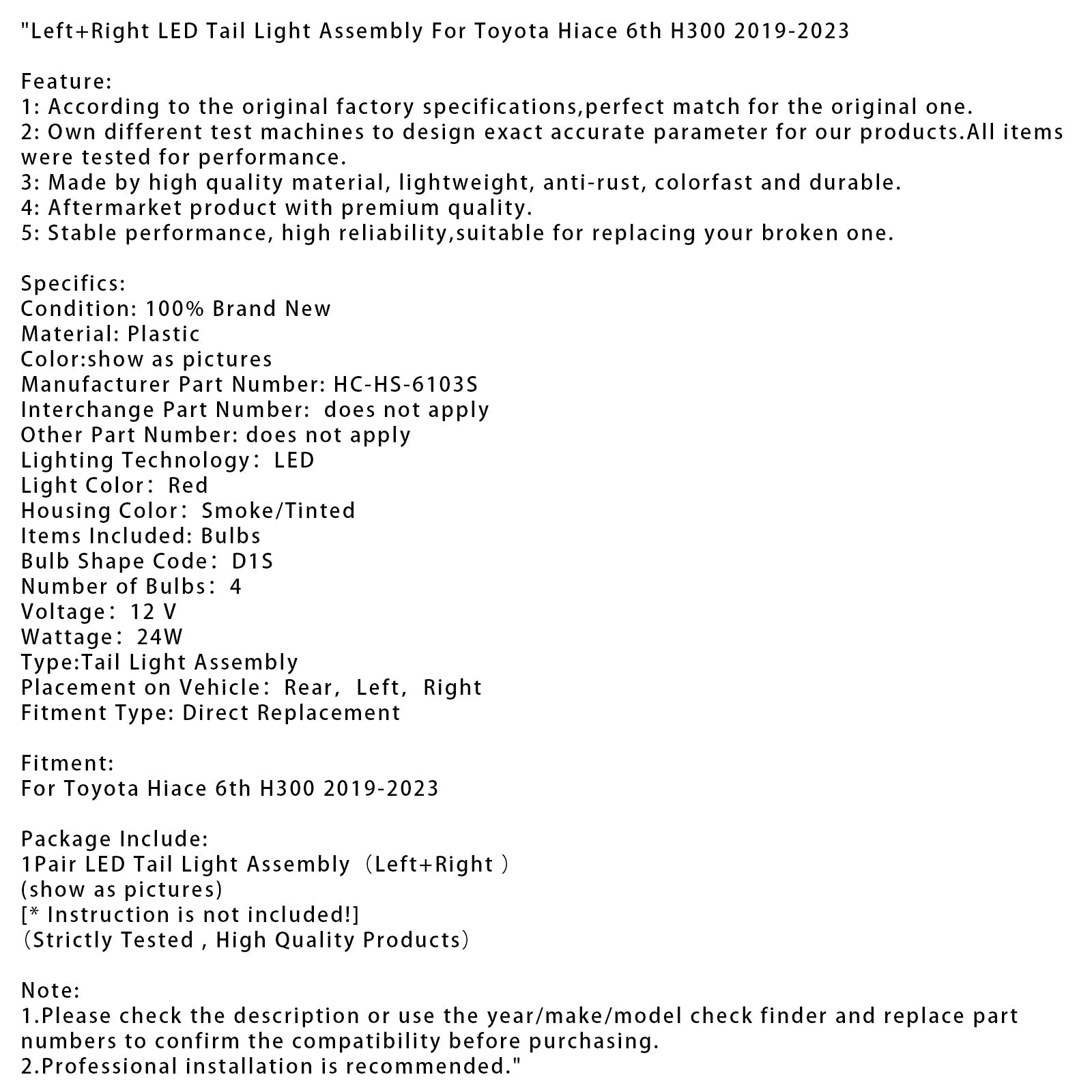 Links + Rechts LED Rücklicht Montage Fit Für Toyota Hiace 6th H300 2019-2023