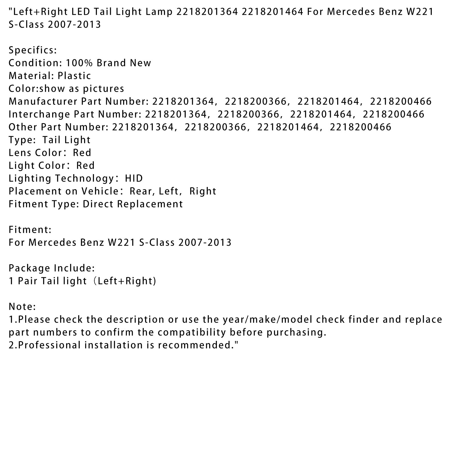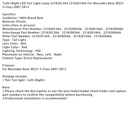 Links + Rechts LED Rücklicht Lampe 2218201364 2218201464 Für Mercedes Benz W221 S-Klasse 2007-2013