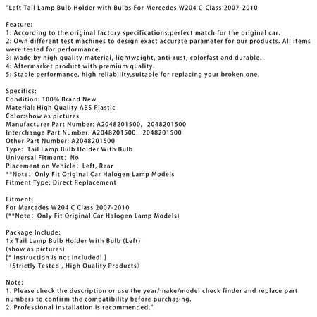 Linke Rücklichtlampenfassung mit Glühlampen für Mercedes W204 C-Klasse 2007-2010