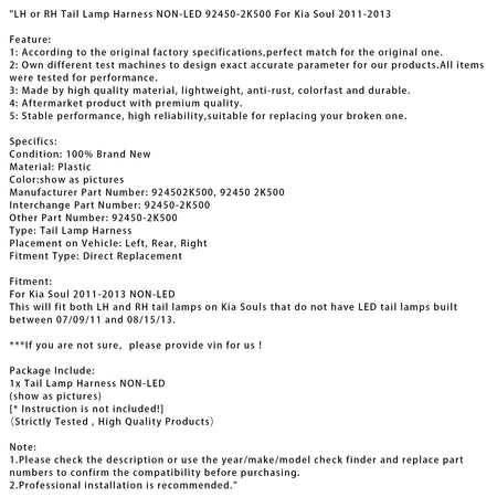 Links- oder Rechts-Rücklichtkabelbaum ohne LED 92450-2K500 für Kia Soul 2011-2013