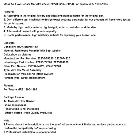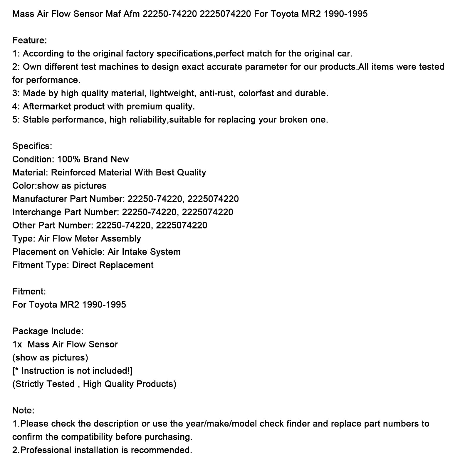 Luftmassenmesser Sensor Maf Afm 22250-74220 2225074220 Für Toyota MR2 1990-1995