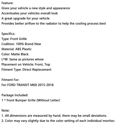 2015–2018 Ford Transit MK8 Raptor Mattschwarzer Kühlergrill für die vordere Stoßstange