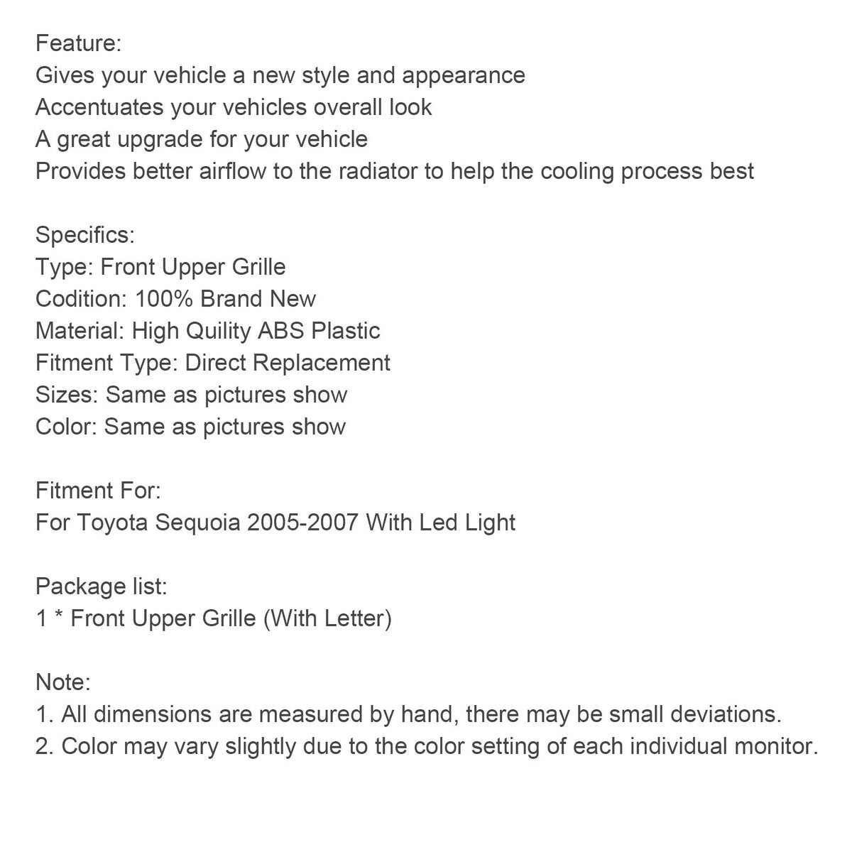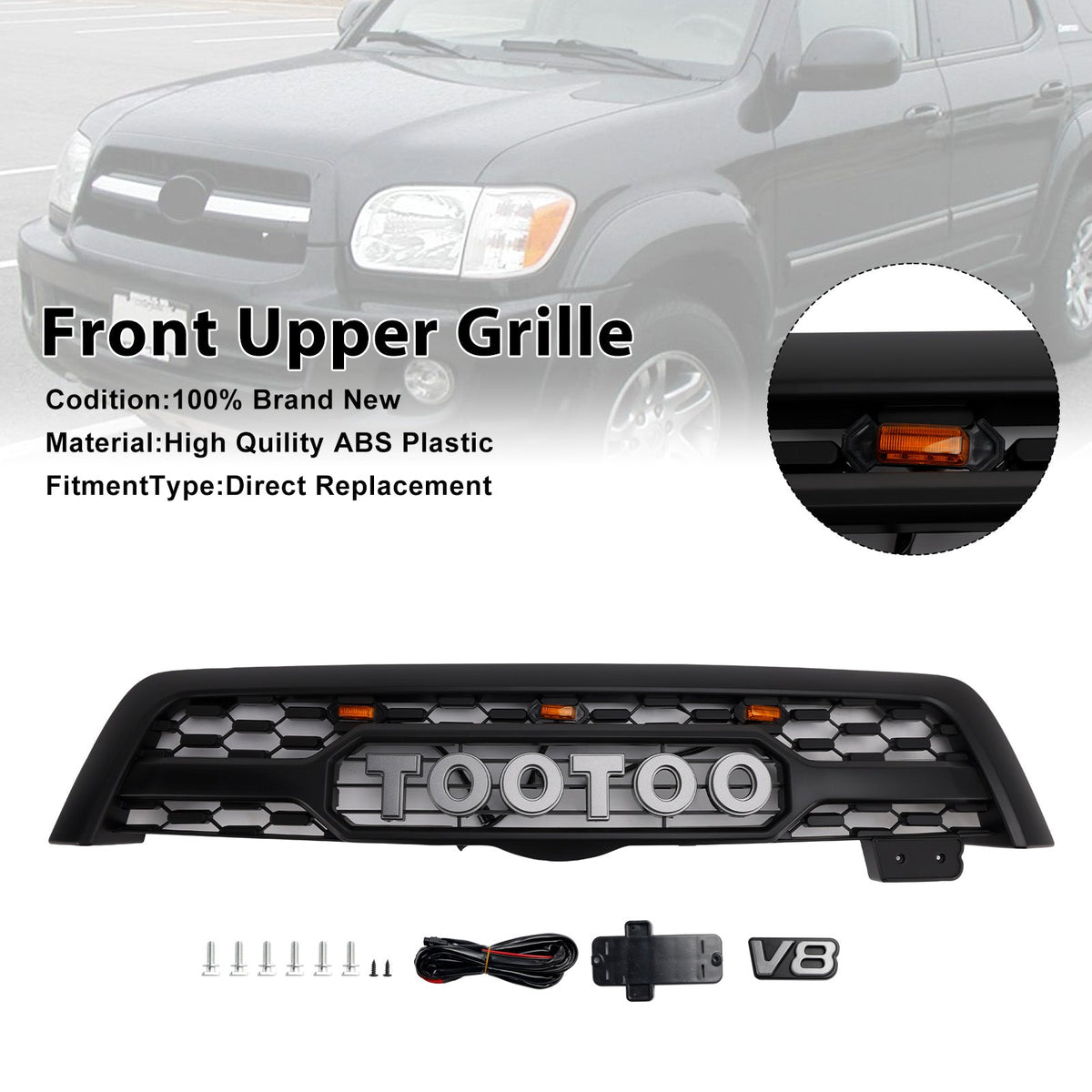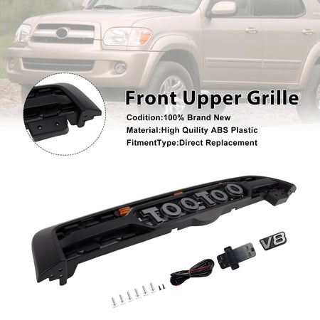 Frontstoßstangengrill in Mattschwarz, passend für Toyota Sequoia 2005-2007 mit LED-Beleuchtung