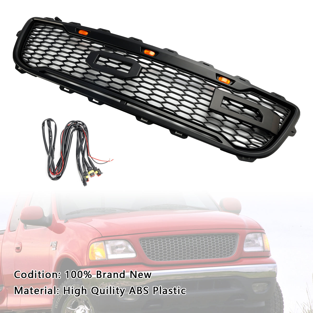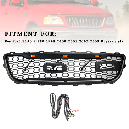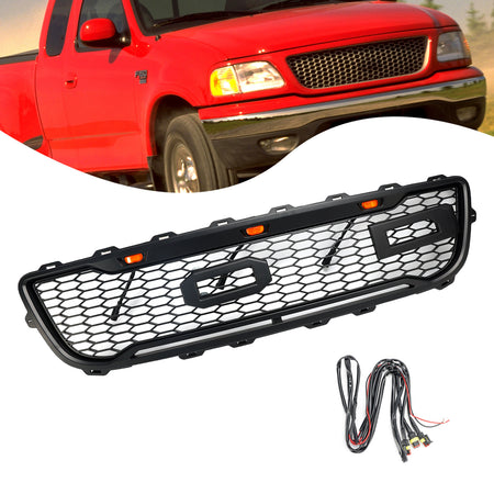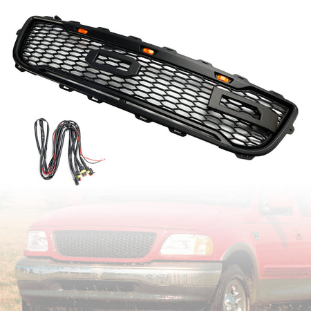 Matte Black Front Honeycomb Bumper Grille Grill Fit Ford F150 1999-2003 W/ Led
