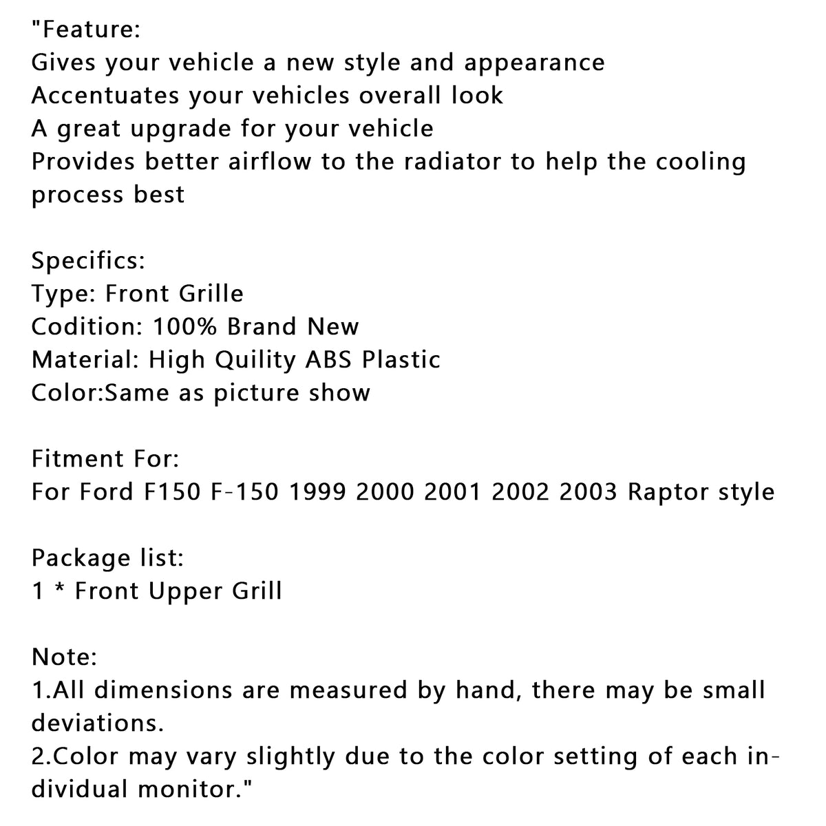 For Ford F150 F-150 1999 2000 2001 2002 2003 Raptor style