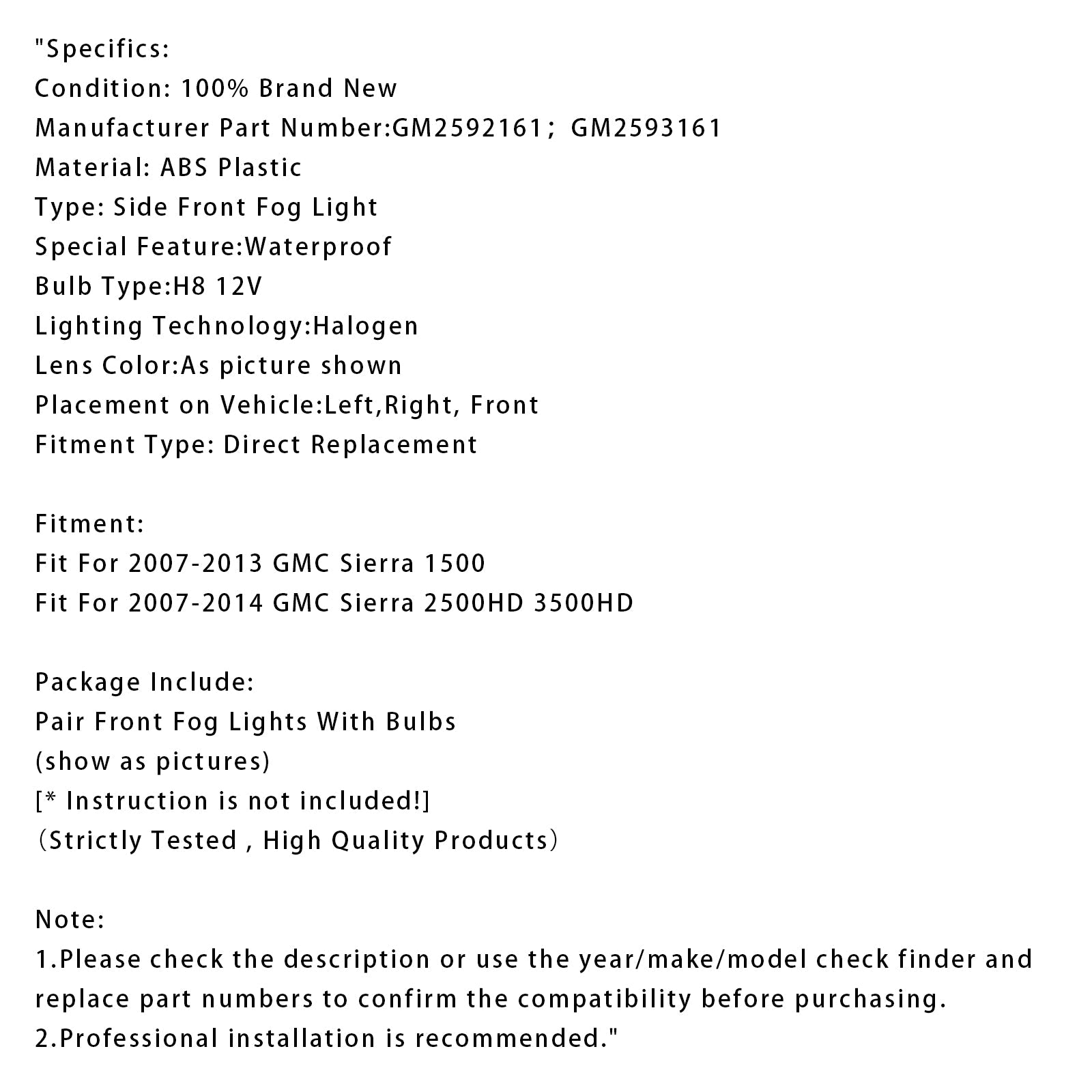 2007–2013 GMC Sierra 1500 Paar Nebelscheinwerfer vorne Lampen mit Glühbirnen