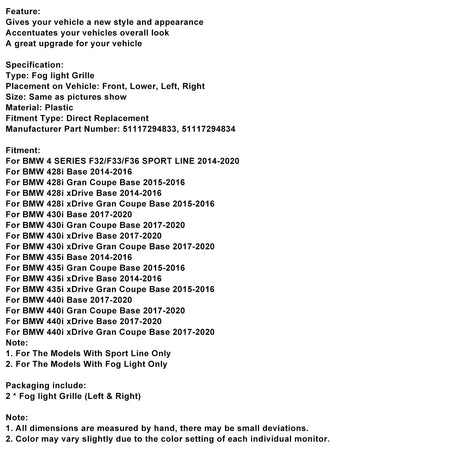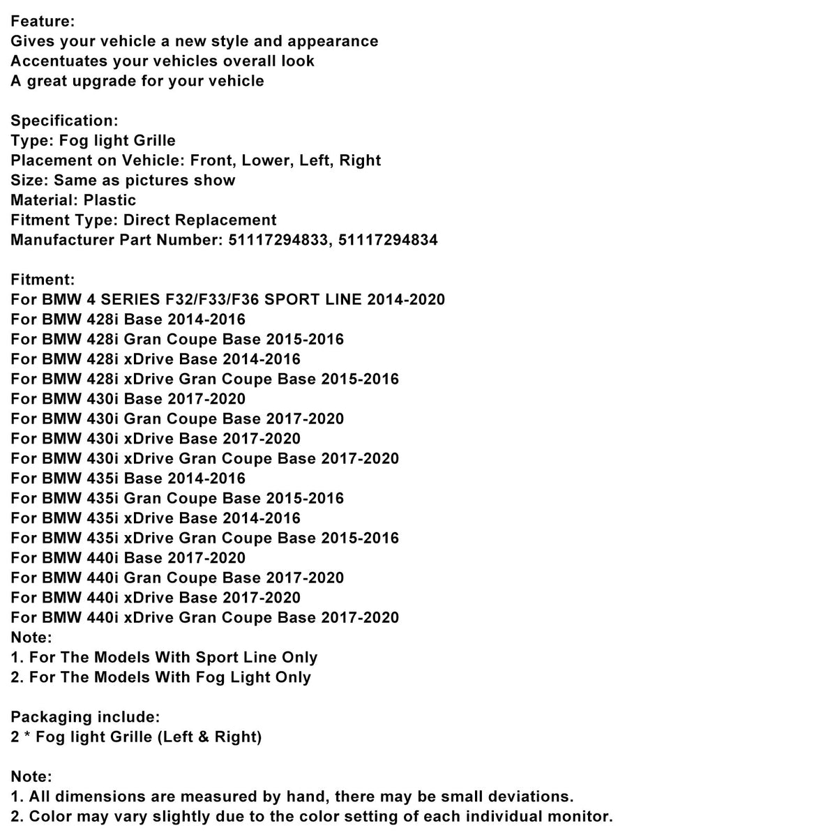Teilweise offenes Gitter Nebelscheinwerfergitter 51117294831 Passend für BMW F32 F33 F36 418D