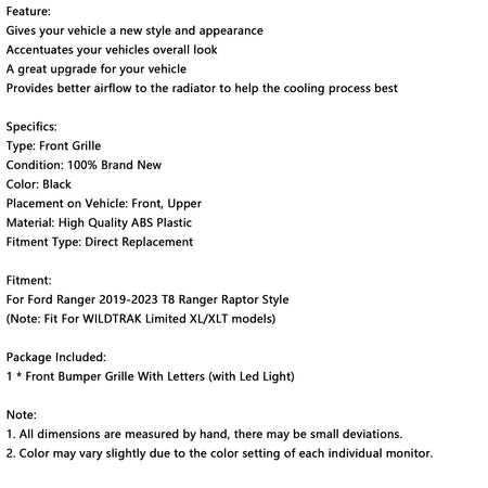 Raptor Style Front Bumper Grille Grill Für Ford Ranger T8 2019-2023 W/LED