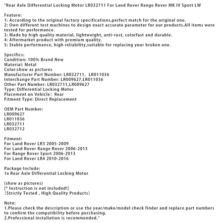 2005-2009 Land Rover LR3 Hinterachs-Differential-Sperrmotor LR032711 LR011036