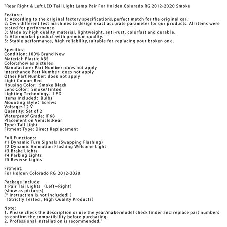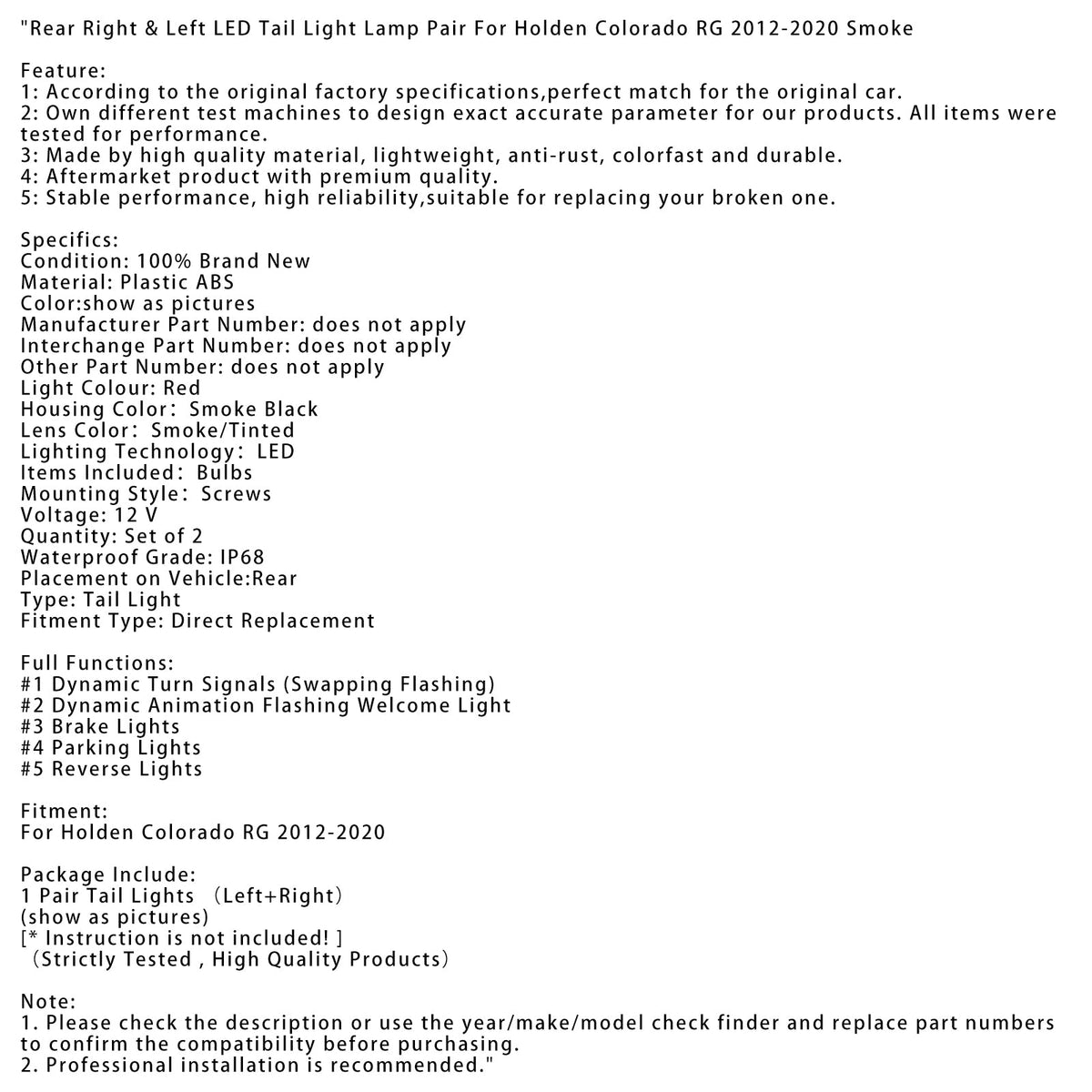 2012–2020 Holden Colorado RG hinten rechts und links LED Rücklicht Lampe Paar Rauch