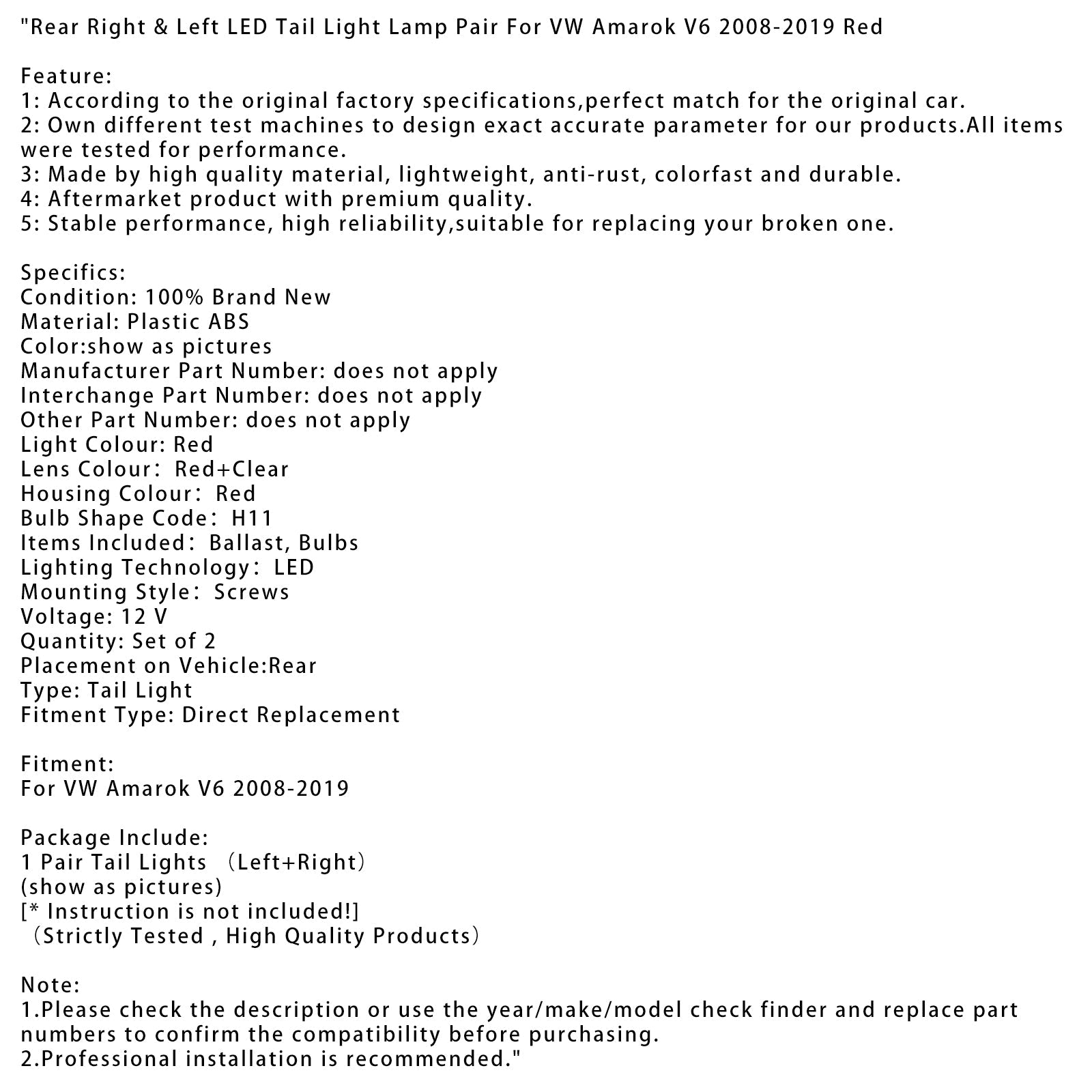 Hinten Rechts & Links LED Rücklicht Lampe Paar Für VW Amarok V6 2008-2019 Rot