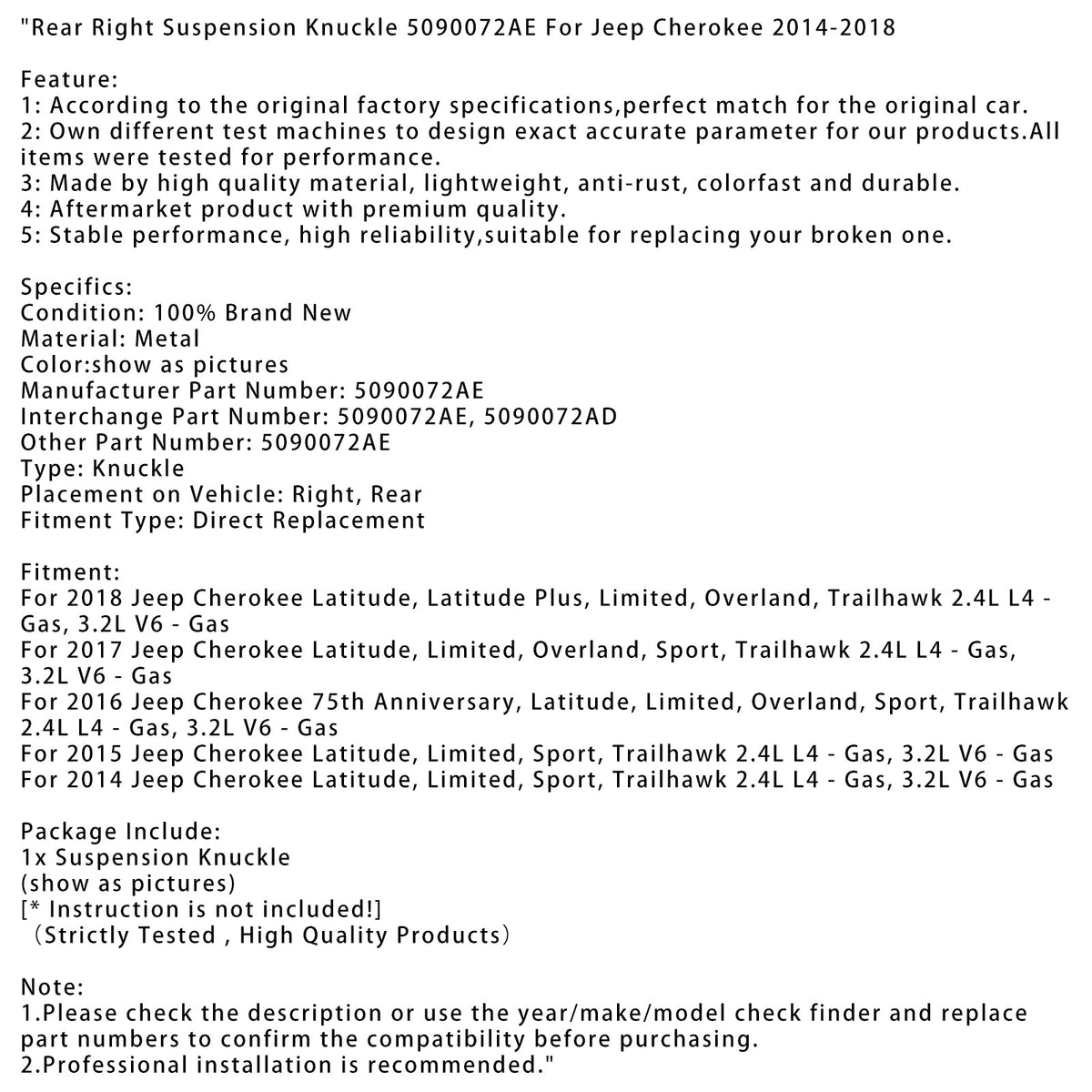 1. Bitte überprüfen Sie vor dem Kauf die Beschreibung oder verwenden Sie die Baujahr-/Marken-/Modellsuchfunktion und ersetzen Sie die Teilenummern, um die Kompatibilit?t zu best?tigen.